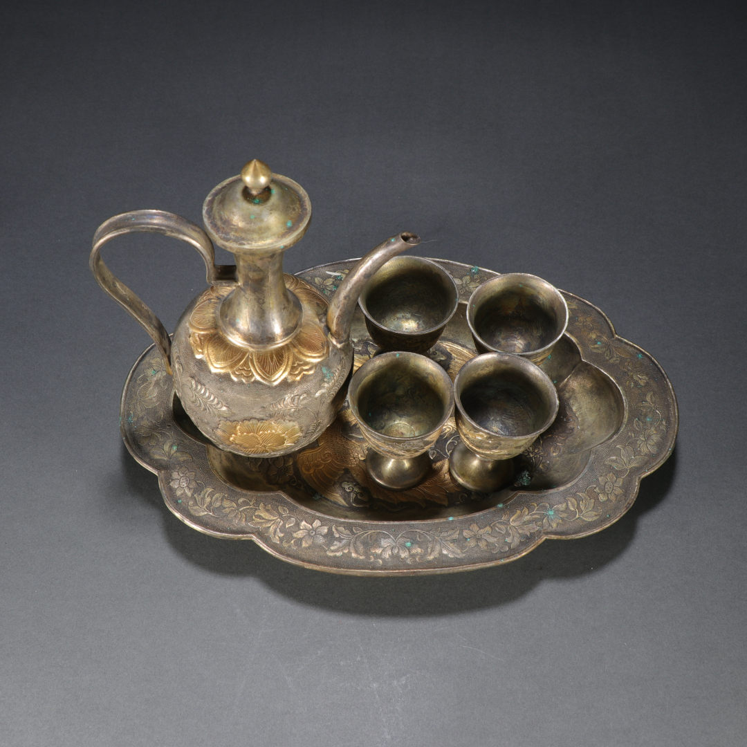 - 乾元宝庫 KM0640:A人間国宝 煎茶道具 紫砂壺 茶壺 急須【唐代の金銅と銀メッキの酒器のセット】 工芸品 陶芸 磁器 古美術 旧蔵 珍品