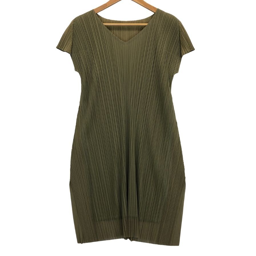 > 極美品◆ワンピース プリーツプリーズ チュール レイヤード ワンピース カーキ サイズ3 レディース PP33-JT626【AFB38】