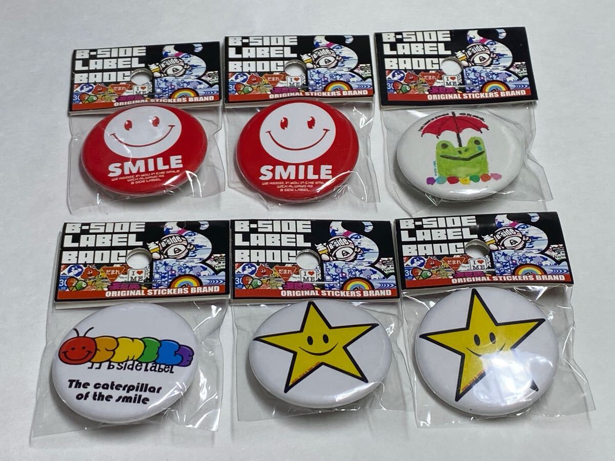 - B-SIDE LABEL 缶バッジ まとめて ダブりあり 4種 スマイル カエル他 未開封