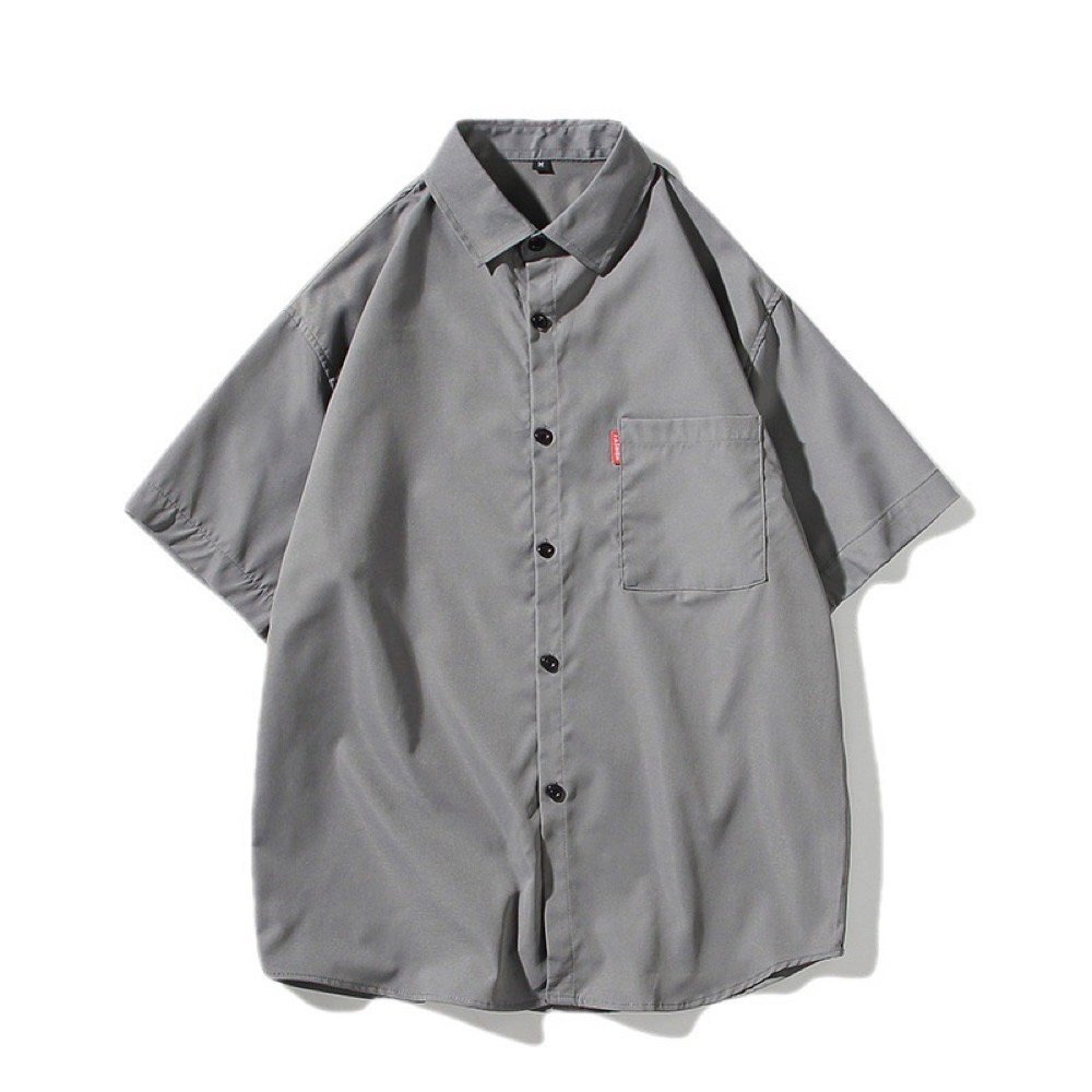 - 半袖シャツ メンズ トップス カジュアルシャツ 開襟シャツ 無地 ビジネス 細身 夏サマー 薄手 ゆったり サマーシャツ 父の日 グレー 2XL