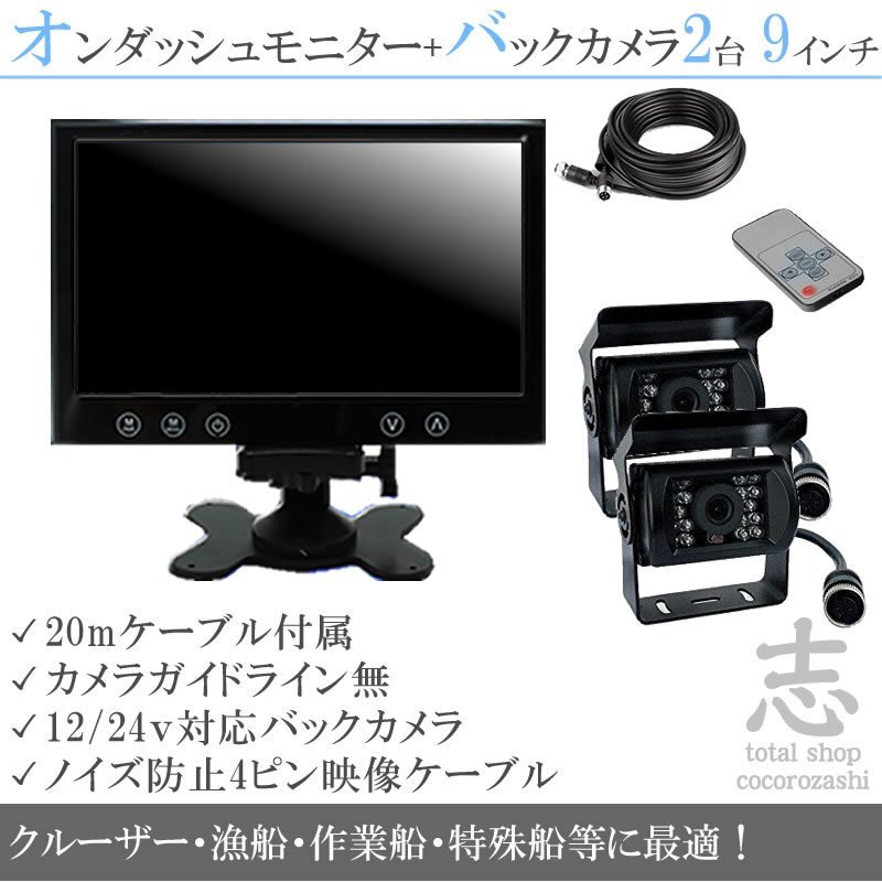 - 限定★船 ボート 12/24V バックカメラ 2台&9インチ液晶&ノイズ防止 船 エンジンルームにも最適 後方確認カメラ 2台目は予備に! 18ヶ月保証