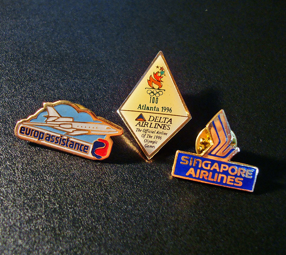 - ■乗物 飛行機 ピンバッジ 3個セット 48 / デルタ シンガポール他