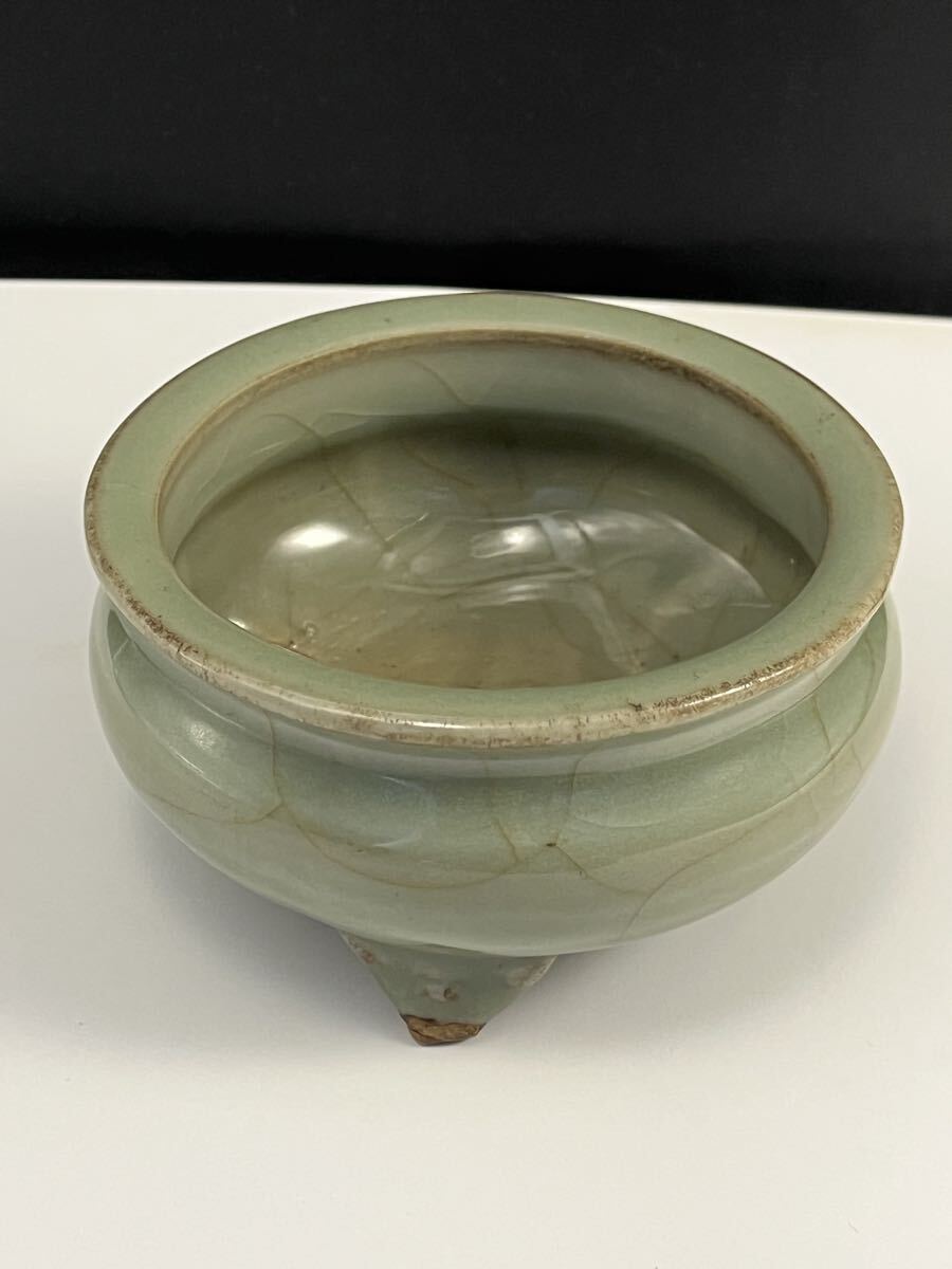 - 時代物 唐物 青磁三足香炉 龍泉窯香炉 香道具