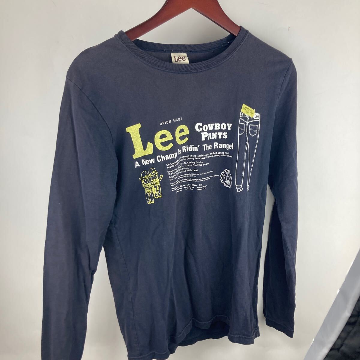> ネイビー Tシャツ ロンT トップス リー カットソー 長袖Tシャツ プリント M Lee メンズ カジュアル 古着 スウェット 紺色 ゆったり
