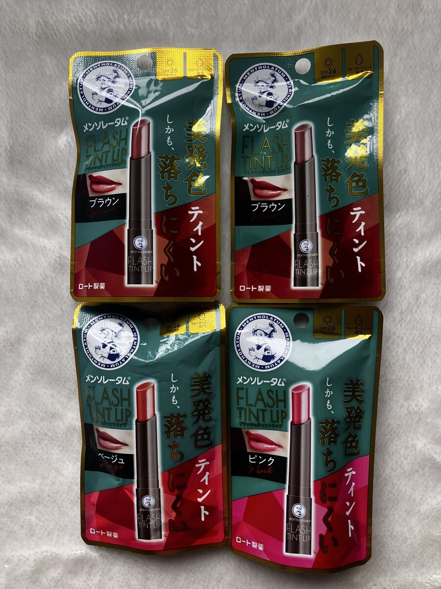 - 購入1週間以内 送料180円 メンソレータム フラッシュティントリップ リップクリーム ピンク ブラウン 4本
