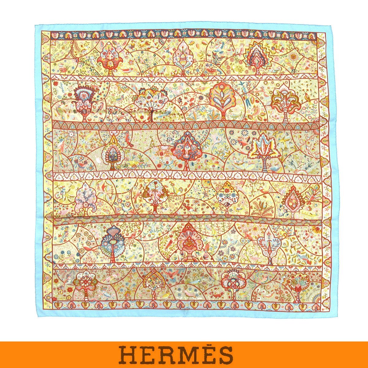 - エルメス カレ 90 2016年 Au Pays des Oiseaux Fleurs 花咲く鳥たちの国で シルク スカーフ ライトブルー ケース付 H89