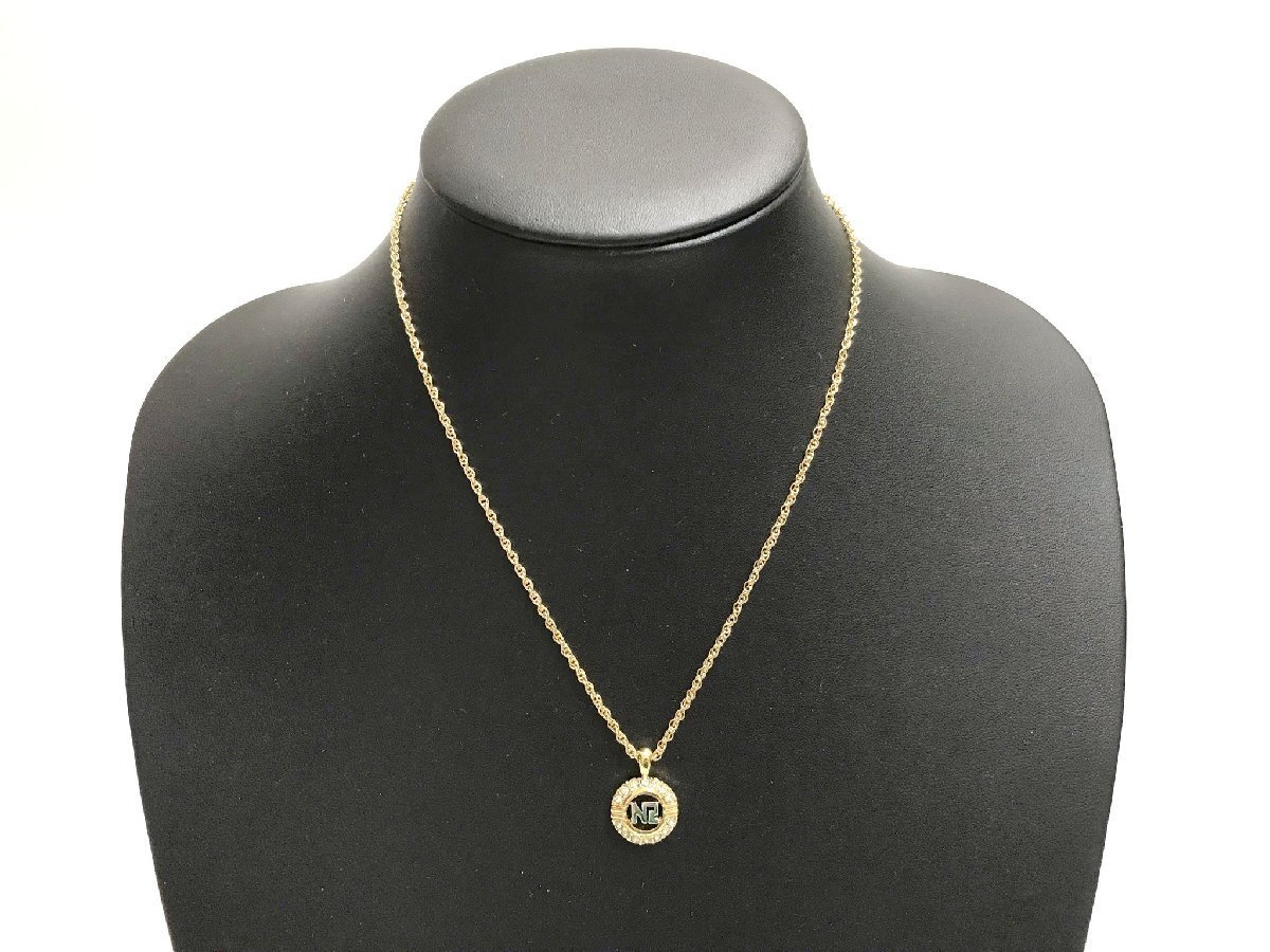 > ■【YS-1M】 状態良好 ■ ニナリッチ NINARICCI ロゴ ネックレス ■ 石付き クリア系 × GP ゴールド トップ直径1.5cm 【同梱可能商品】■D