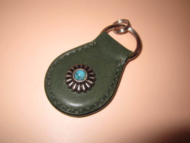 - キーホルダー キーリング チャーム「グリーン2」バイカー ロッカー ウエスタン ハーレー ハンドメイド サドルレザー 本革