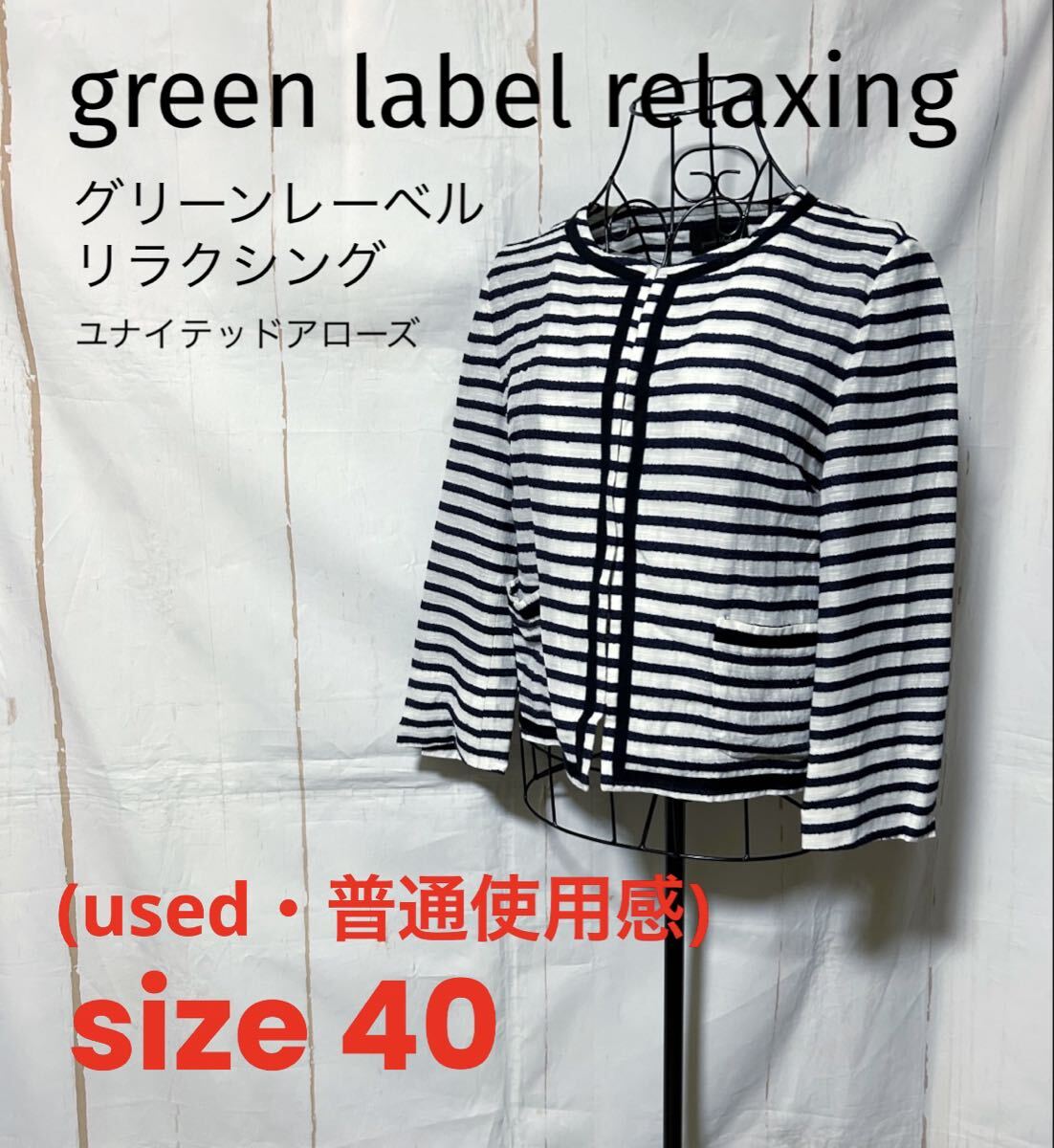 > green label relaxing グリーンレーベル ユナイテッドアローズ ホック式 ボーダー 長袖 ジャケット 上着(used、状態普通使用感)サイズ40