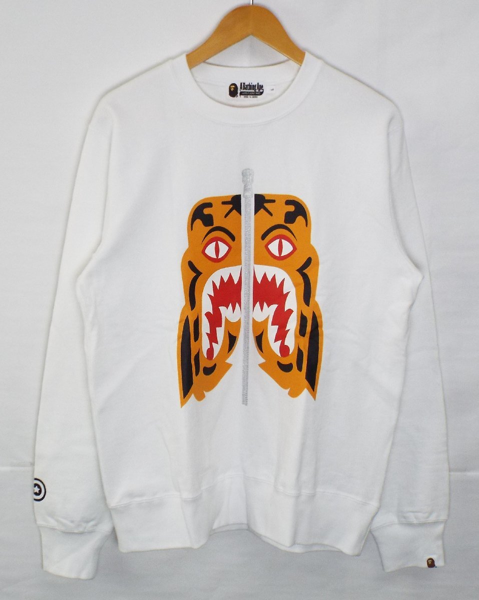 > D683〇A BATHING APE/アベイシングエイプ TIGER CREWNECK クルーネック スウェット トレーナー 001SWE201003X ホワイト Lサイズ