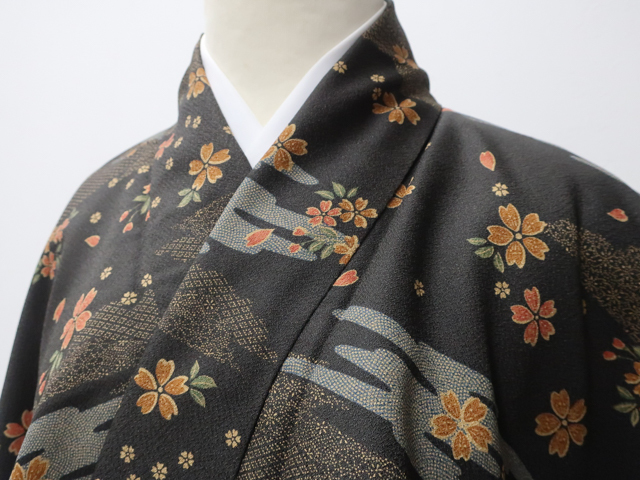 - 《京都一輝堂》【着物】小紋 洗える着物 桜文 身丈約163cm 裄丈約65cm 24z-3281