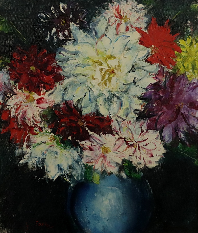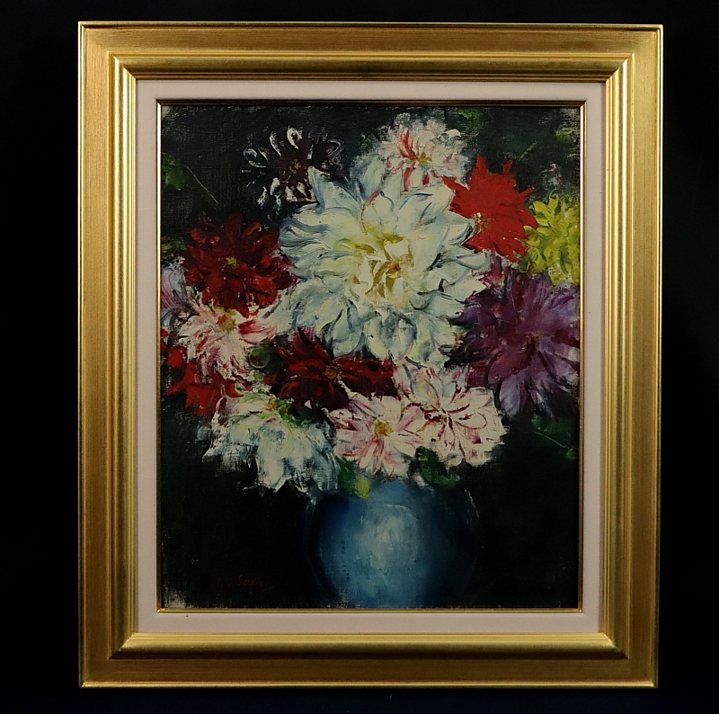 - 11161■【真作】佐伯米子 静物画 花 キャンバス 肉筆 油彩 佐伯祐三の妻 モーリス・ド・ヴラマンクに師事 女流画家協会 額装