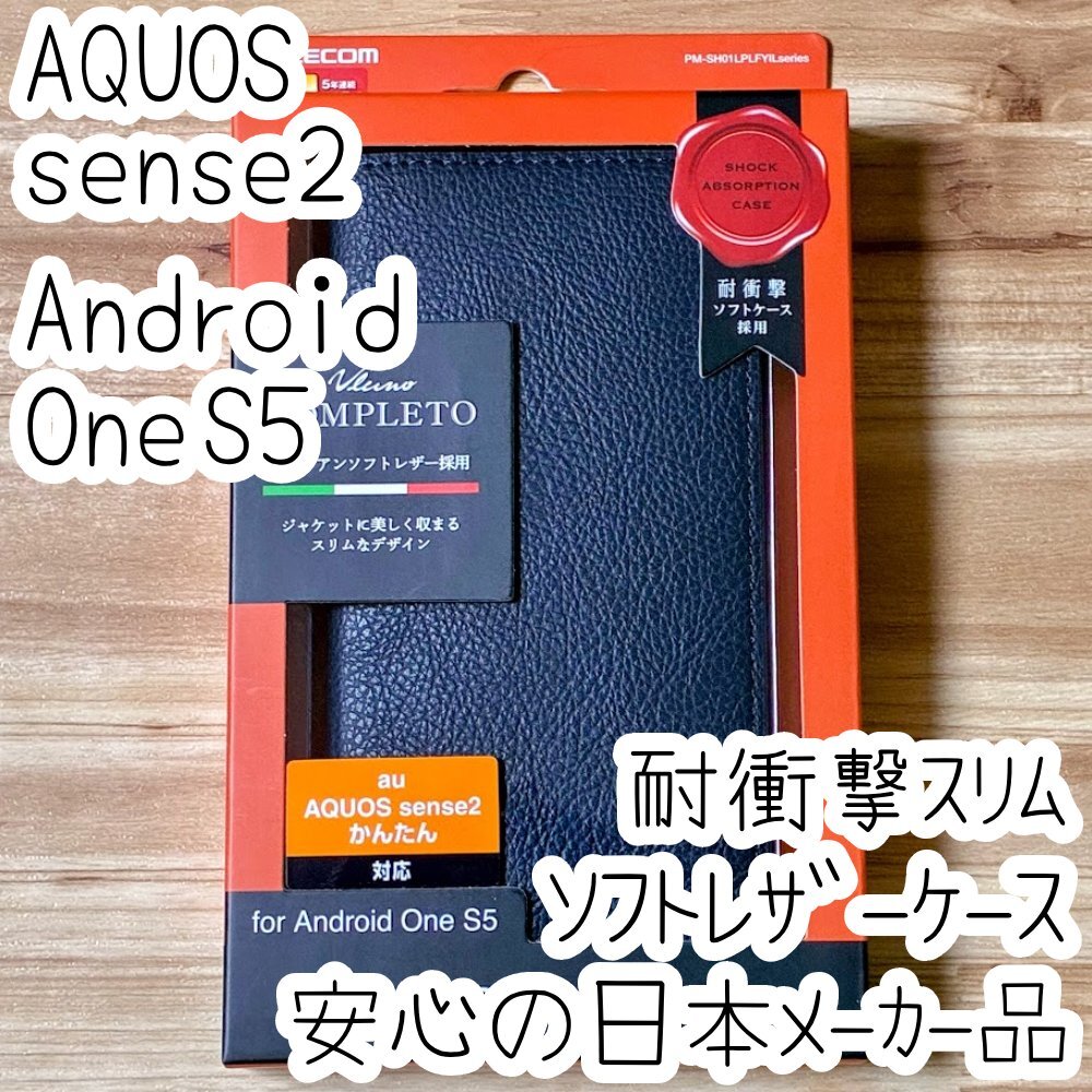 - AQUOS sense2 手帳型ケース Android One S5 カバー イタリアンソフトレザー 耐衝撃 ネイビー カードポケット 970