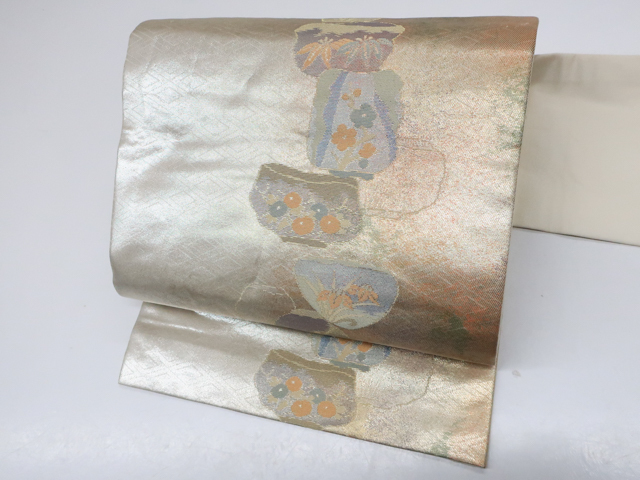 > 《京都一輝堂》【着物】九寸名古屋帯 古典花文 24b-2413