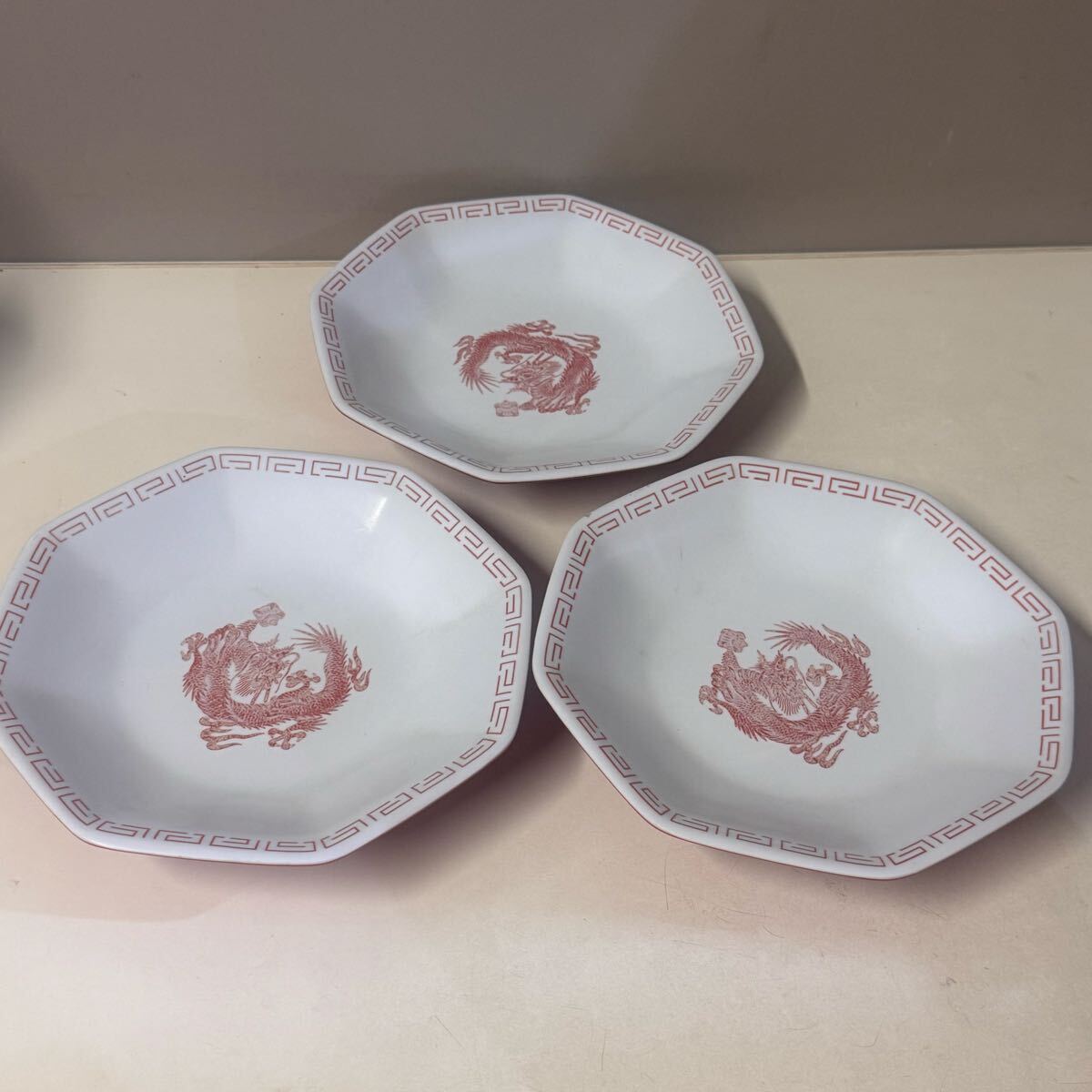 - プラスチック製 中華食器 チャーハン皿 八角皿 龍 皿 中華皿 3枚セット 赤