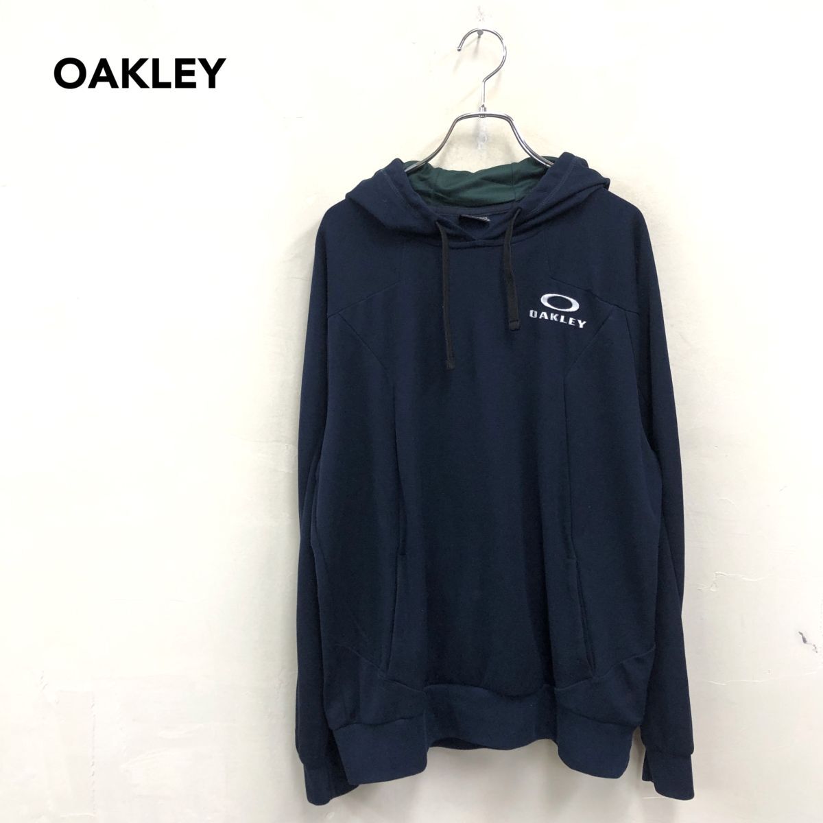 > 2O1518-Q-N◆OAKLEY オークリー フーディパーカー プルオーバー スポーツ 薄手 ロゴ刺繍 トップス◆size XL ネイビー 紺 ポリエステル100