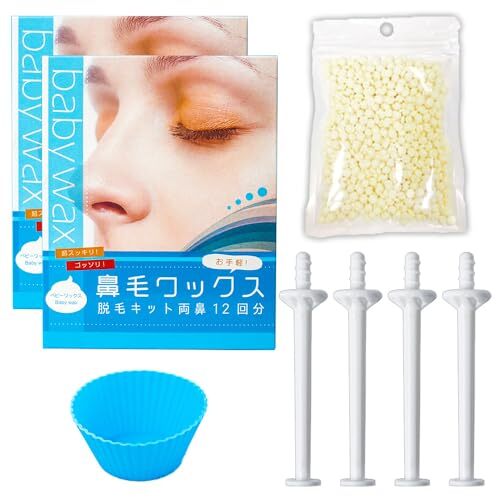 - 鼻毛脱毛キット2箱 BABY WAX ブラジリアンワックス 鼻毛 24回分 (12回分×2個セット) ブルー ワックス脱毛