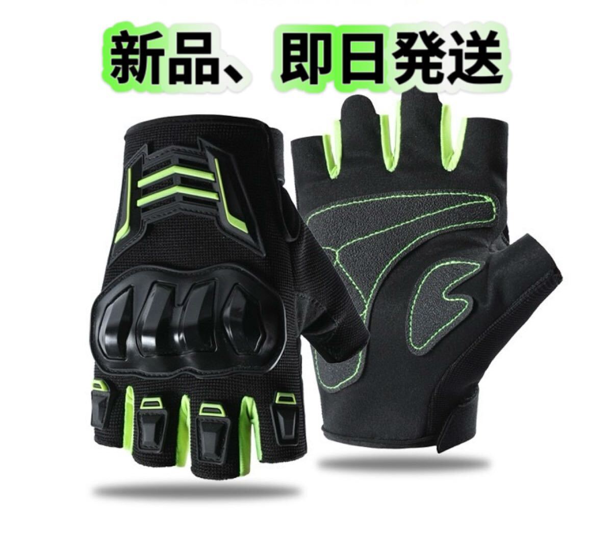 - 【グリーン】バイク 自転車用手袋、夏用ハーフフィンガー、レーシンググローブ