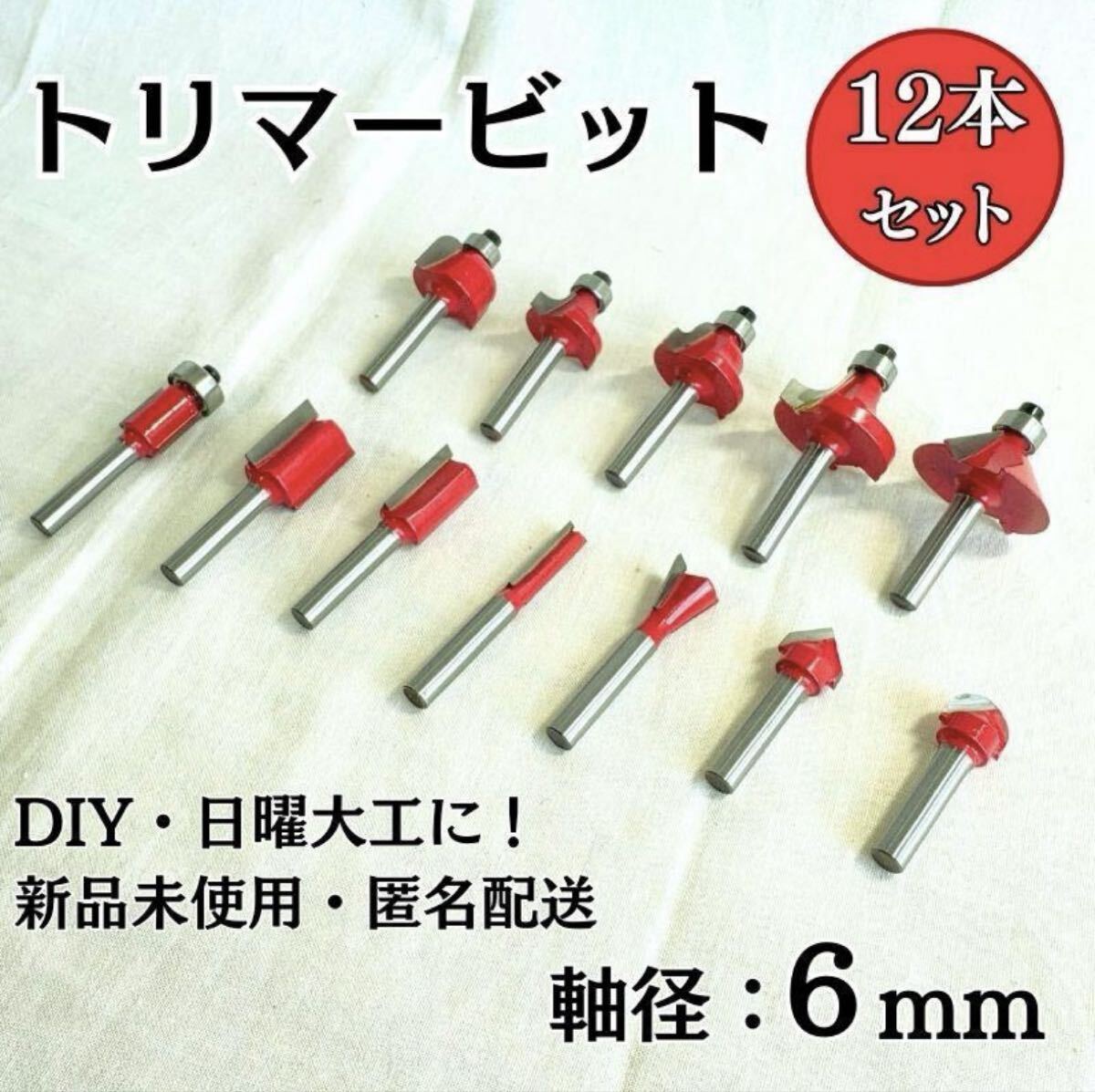 > トリマービット 12本セット 軸径6mm 超硬 超硬チップ 木工 ルーター 面取り 溝掘り 加工 DIY 工具 ケースなし