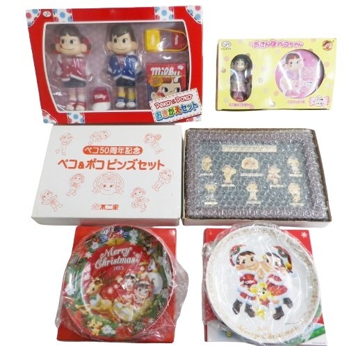 > 28☆0084 ●未使用品 不二家 ペコちゃんおきがえセット ピンズセット お散歩ぺこちゃん クリスマスプレート2015 2016 まとめ 現状