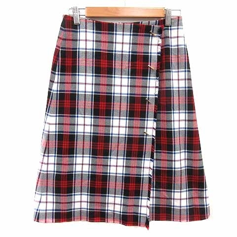 - ロペ ROPE ラップスカート タイト ミモレ ロング チェック 赤 レッド 白 ホワイト 黒 ブラック /YK レディース