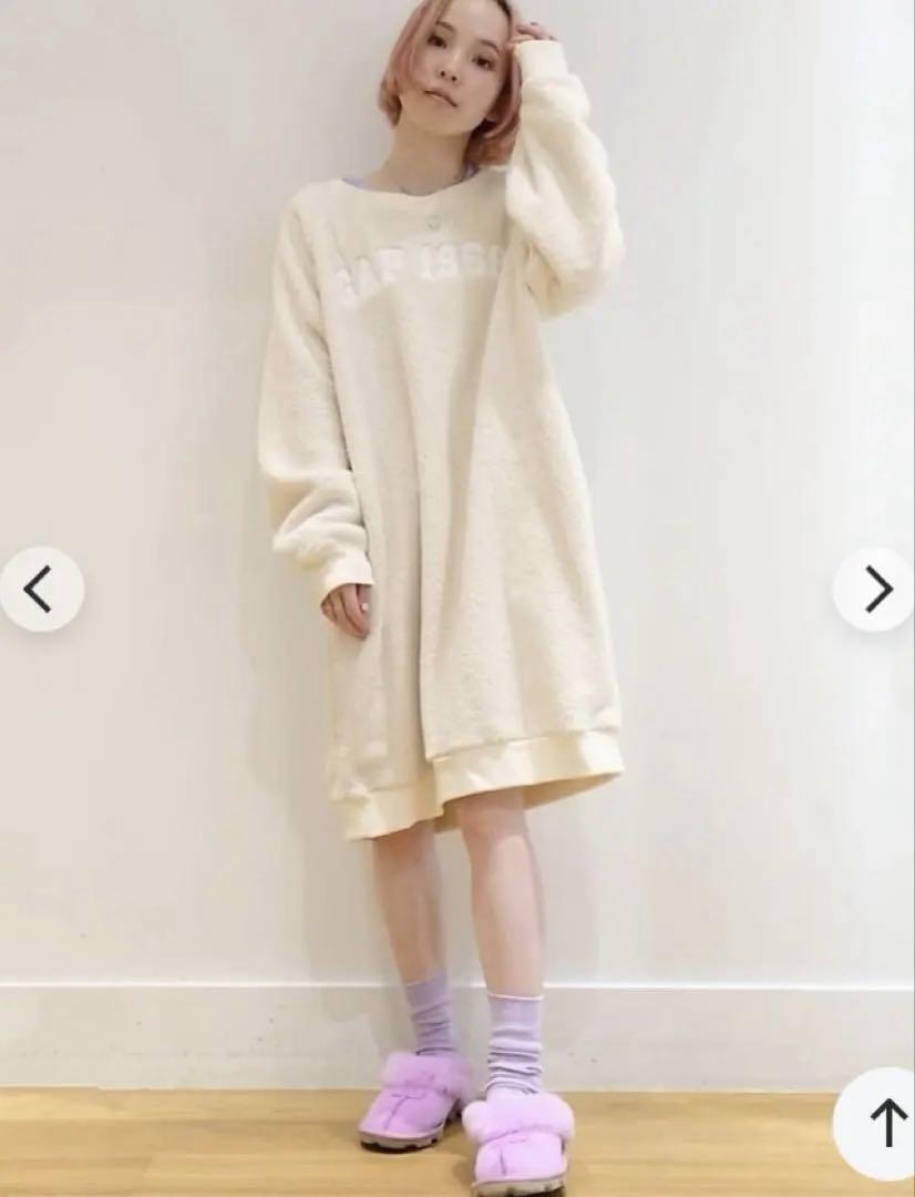 - ギャップ ボアワンピース S アイボリー 英字刺繍 ゆったり ポケット付き