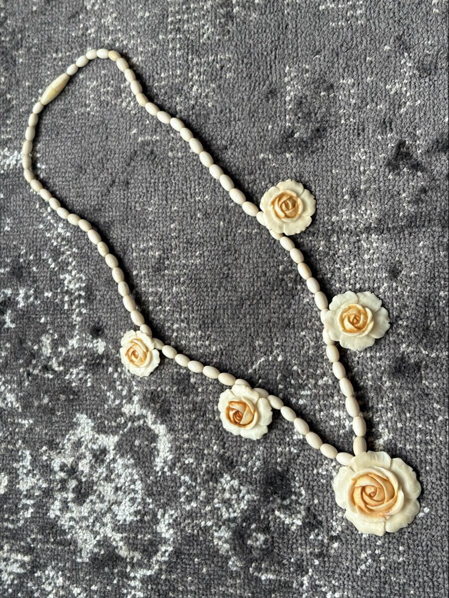 - ◆送料無料◆アンティーク ローズペンダントとネックレス セルロイド ボーン フランス ヴィンテージ 蚤の市 ブロカント
