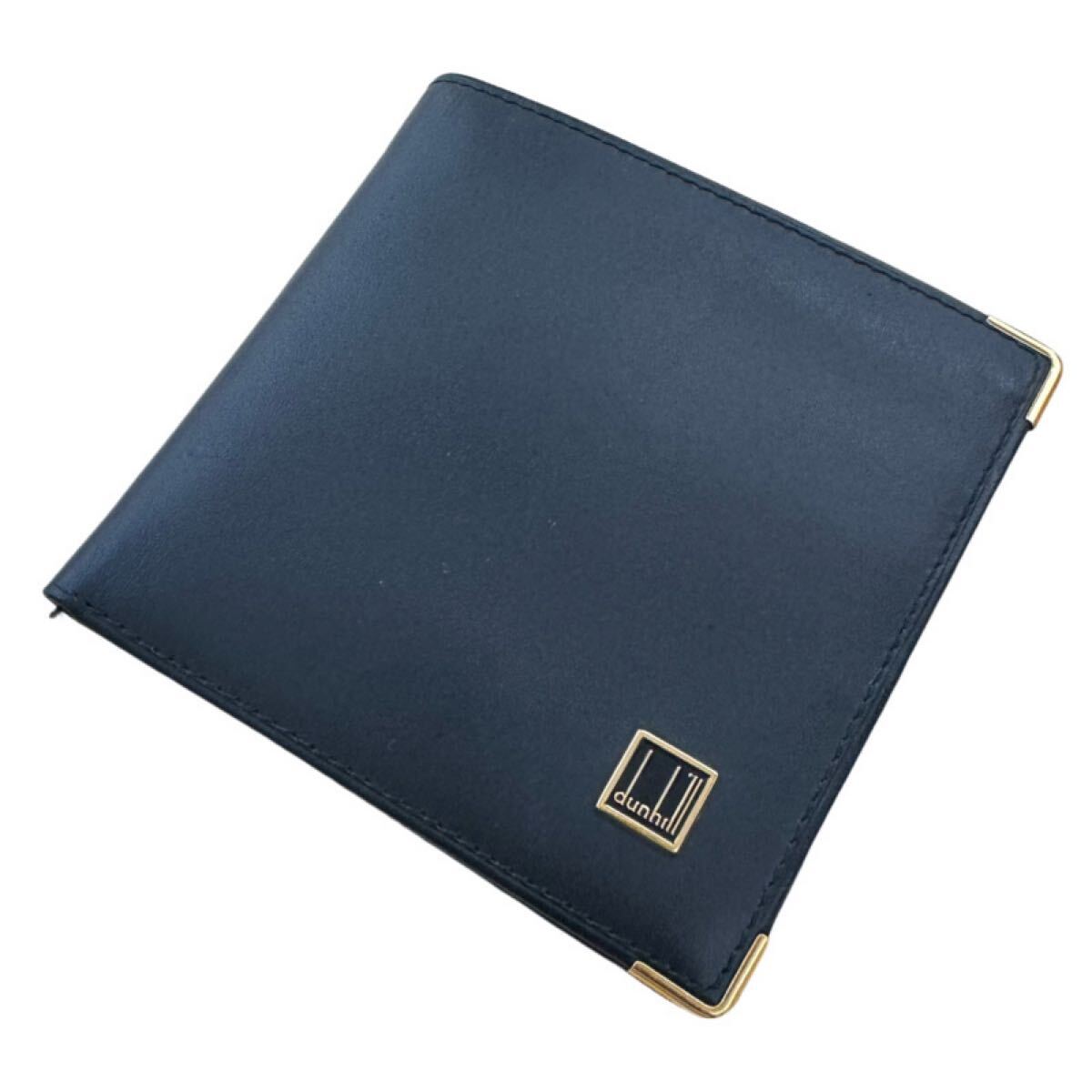> dunhill ダンヒル レザー ゴールド金具 二つ折り財布 札入れ コインポケット カード入れ ブラック 美品