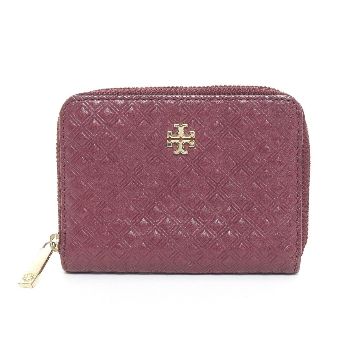 - □463121 TORY BURCH トリーバーチ コインケース・カードケース ラウンドファスナー 型押しレザー レディース パープル