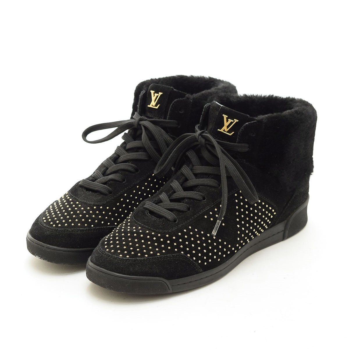 > □529671 LOUIS VUITTON ルイヴィトン ハイカットスニーカー スタッズ スウェード ボアムートン サイズ36 23.0cm相応 レディース ブラック