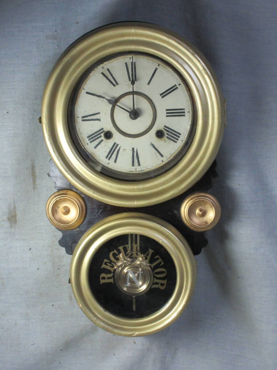 - 柱時計 8インチペイント文字盤 四つ丸 日本時計製 古時計 完動品