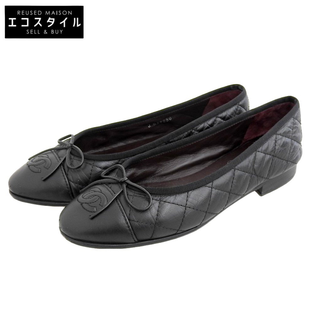 - CHANEL シャネル レザー フラット パンプス レディース ブラック 36