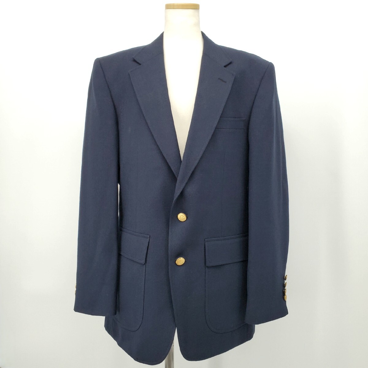 シングル 紺ブレザー センターベント 2B 2つボタン 金ボタン 袖ボタン4つ 無地 アンドハースト 90s Vintage ヴィンテージ 古着 紺ブレ