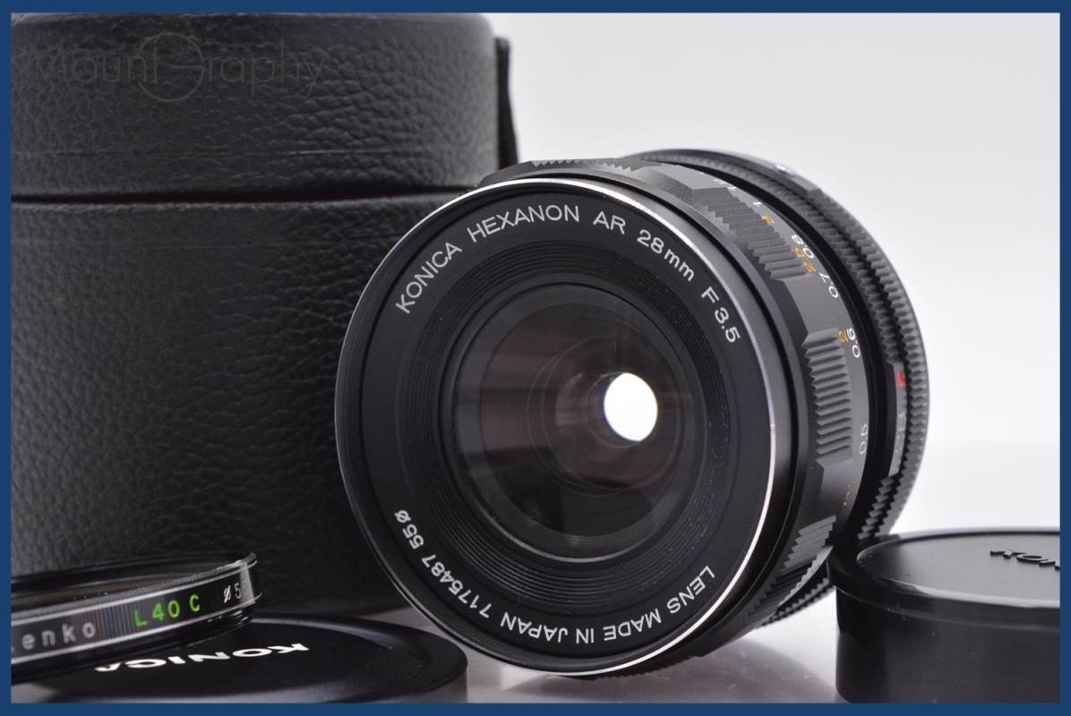> ★極上美品★ コニカ Konica HEXANON AR 28mm F3.5 前後キャップ&レンズフィルター、ケース付 ★完動★同梱可 #mj3456