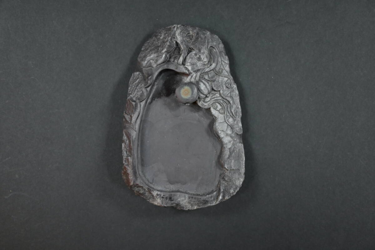 - D3 端渓 老抗 天然石 硯 古硯 唐硯 祥雲龍 唐物 中国 古玩 書道具 文房四宝 筆 墨