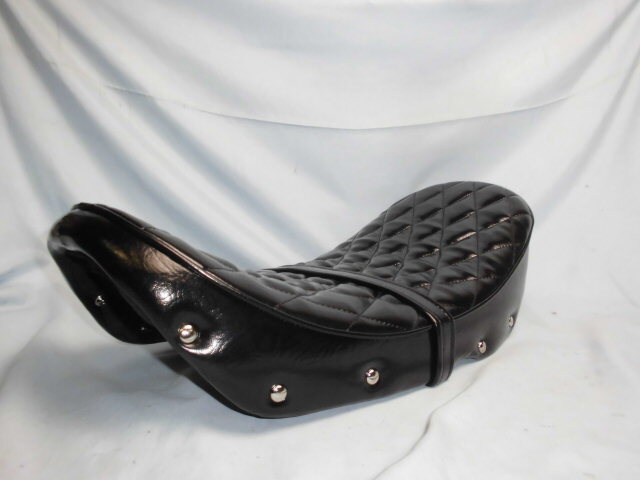 > ■ 6Vダックス 初期型 純正改 鋲打ち ダイヤ柄 バナナシート 艶アリ黒レザー カスタムシート ベルト付 ST50 ST70 DAX 6V DAX純正ベース