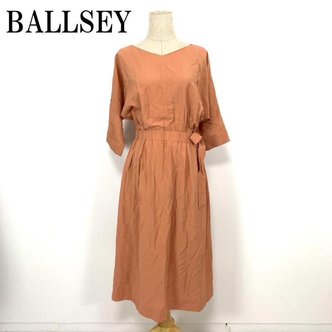 > LA7569 ボールジィ BALLSEY Vネック ドロップショルダー フレア くすみオレンジ 7分袖 ロングワンピース オレンジ系 レーヨン F
