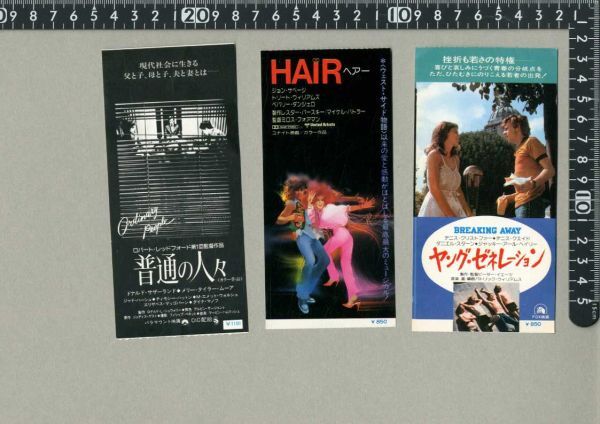 - 13●映画半券3枚セット:『普通の人々/ヘアー/ヤング・ゼネレーション』●