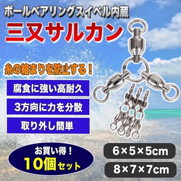 - 【新品】三又サルカン 釣り 魚 釣り道具 海 釣具 スイベル 船 フィッシング ステンレス スナップサルカン 海釣り 8×7×7 (10個)
