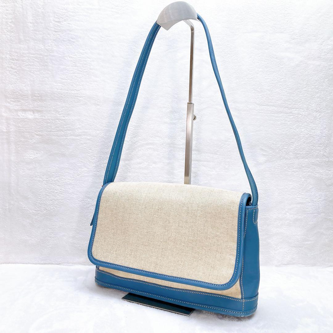- 美品COACH コーチ トートバッグ キャンバス ブルー レザー 激レア