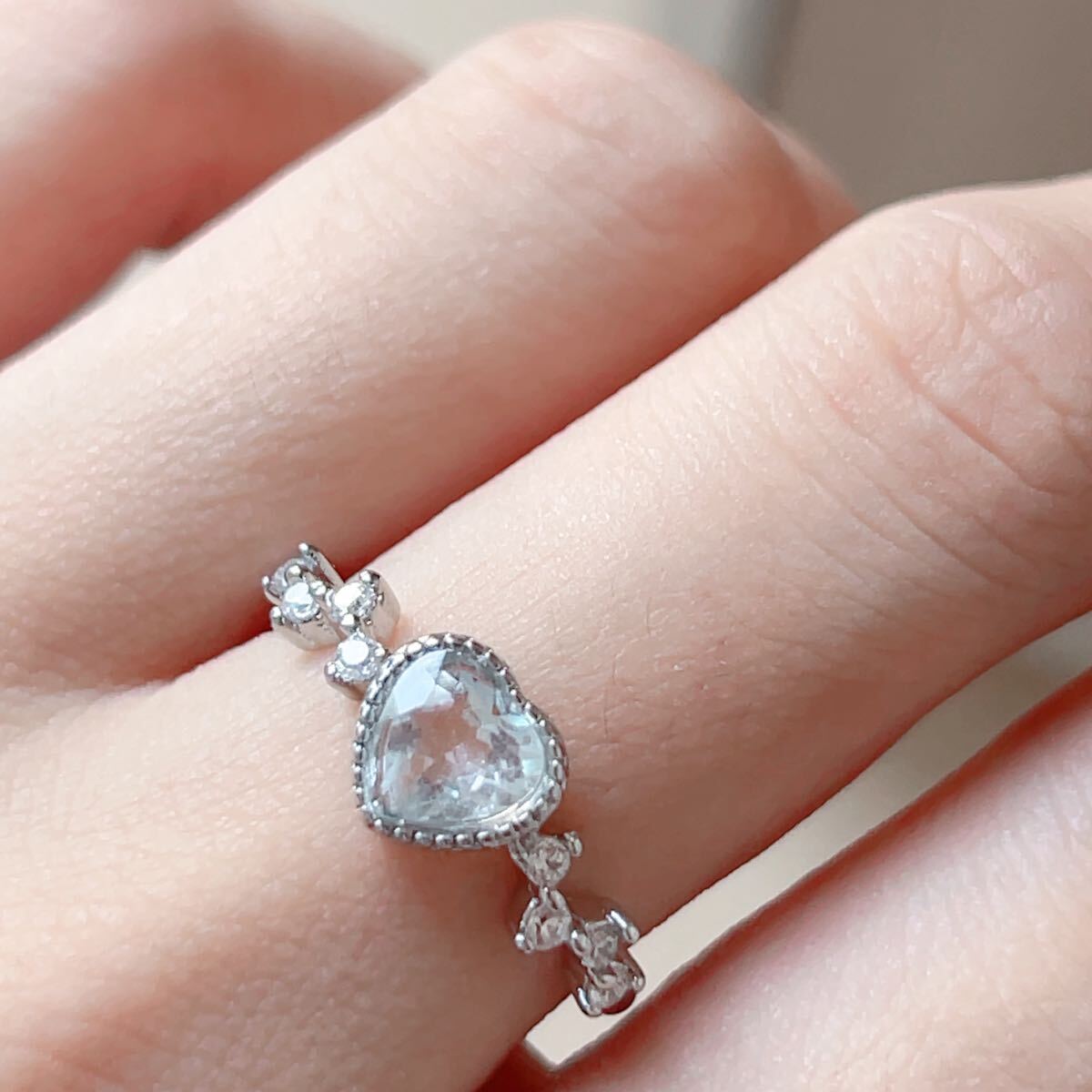 - ◇アクアマリン◇指輪◇リング◇ 面カット キラキラ◇フリーサイズ◇天然石◇パワーストーン◇巾着袋付◇プレゼントにも 041R101447