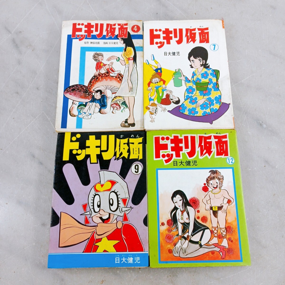 - 激レア! ドッキリ仮面 漫画 原作 神保史郎 日大健児 曙出版 当時物 昭和レトロ 初版あり 4/7/9/12巻 4冊セットで