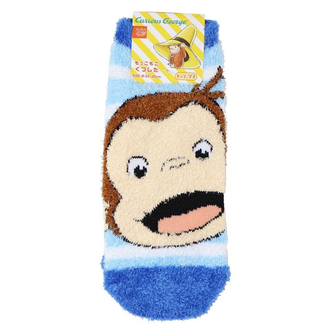 - おさるのジョージ 女性用防寒靴下 もっこもこ靴下 フェイス ボーダー スモールプラネット レディースソックス ウォーマー雑貨 絵本