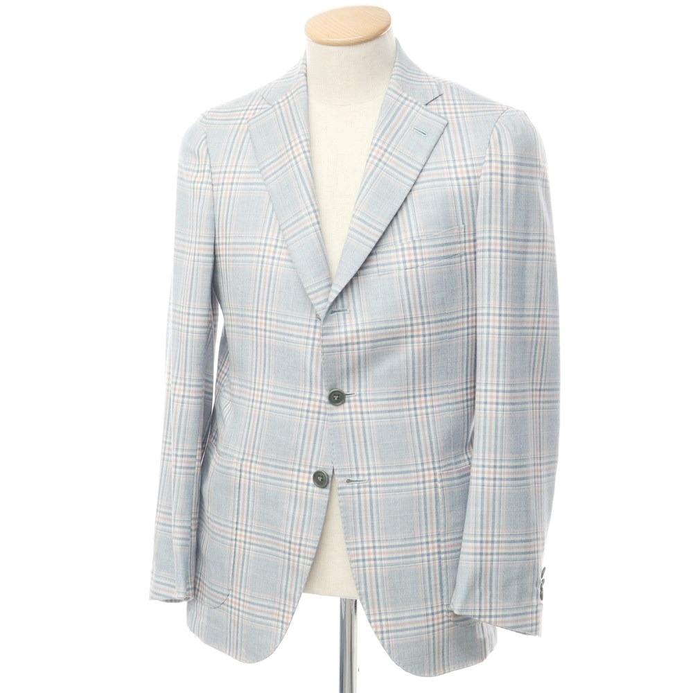 - 【中古】ルイジ ボレッリ Luigi Borrelli カシミヤシルク チェック ジャケット ライトブルーxピンク【44】 EPD