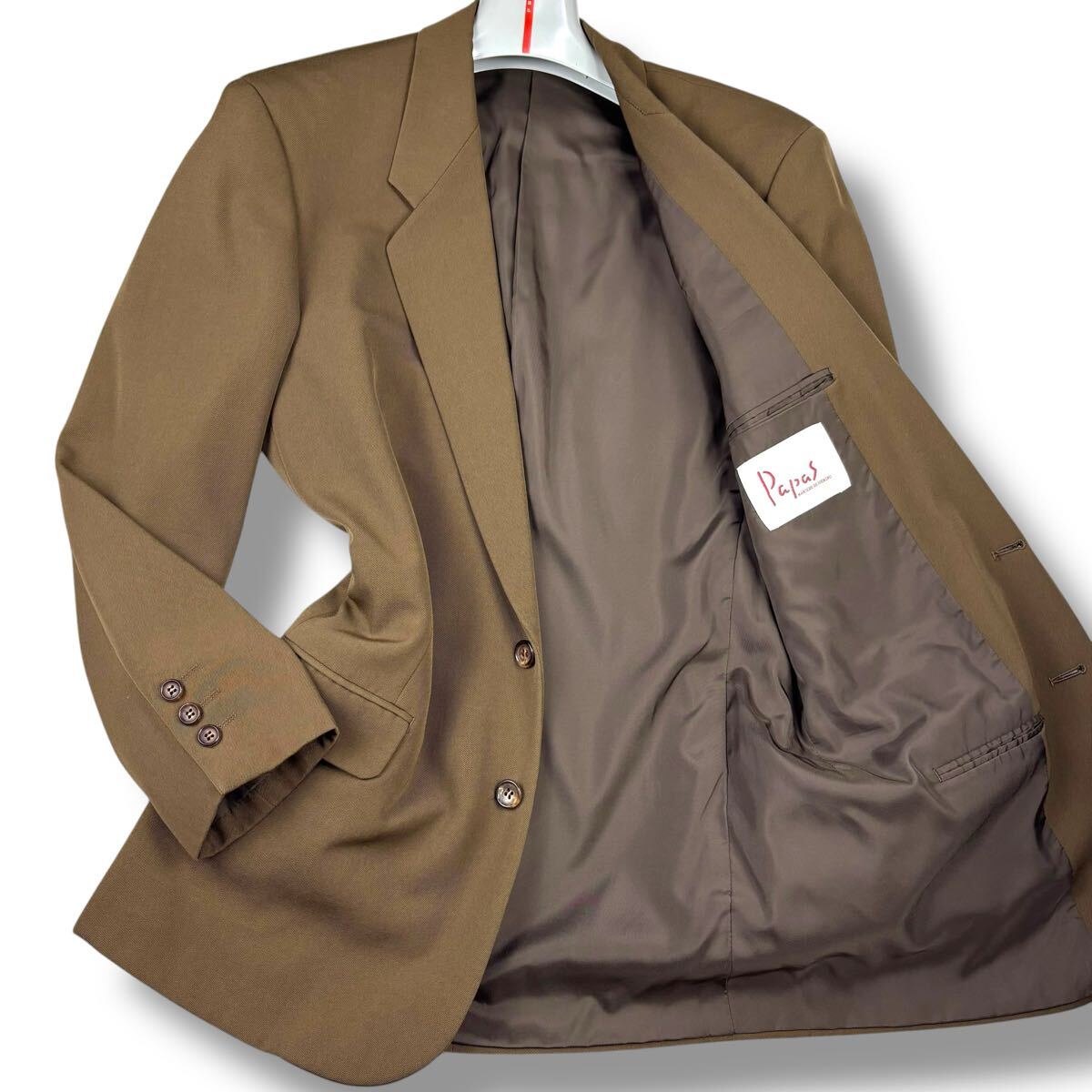 - 1円 美品 L~XL.LL パパス PAPAS テーラードジャケット 2B コットン 重厚感 メンズ ブラウン 44 S