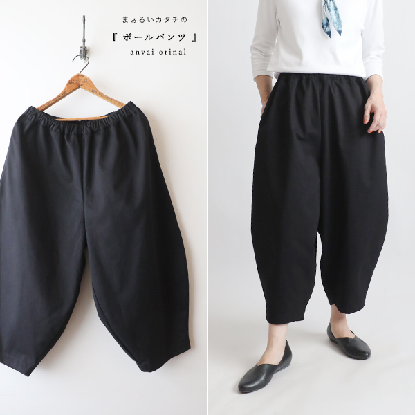 - 秋のパンツ祭り 80cm丈 コットンチノ生地 定番バルーン ボール パンツ ゆったり チノパン ブラック R53B