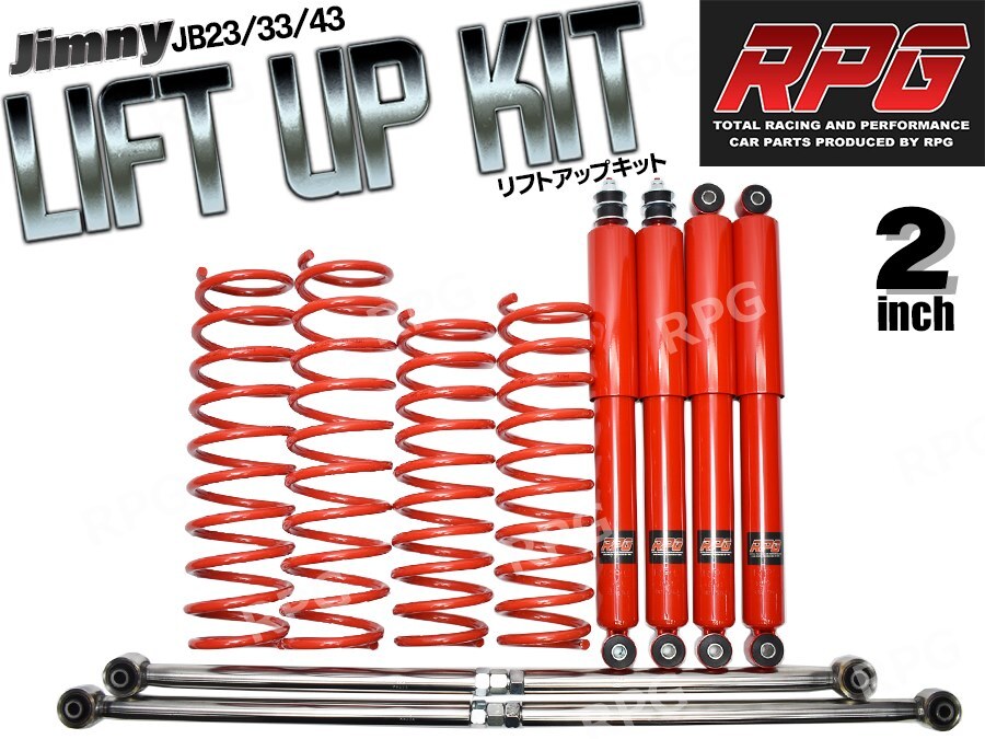 > ジムニー JB23/JB33/JB43 2インチ リフトアップキット RPGロングショック赤 ステンラテ コイル赤