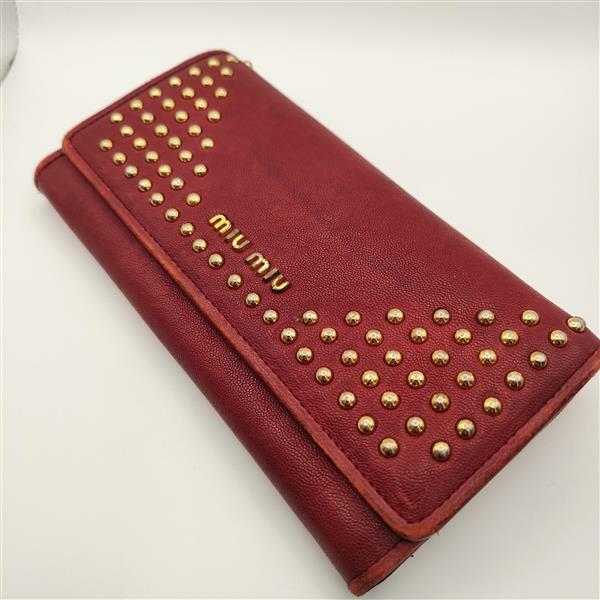 > miumiu ミュウミュウ 二つ折り 長財布 ウォレット 札入れ 小銭入れ レディース レッド系 中古品 譲渡品 1186