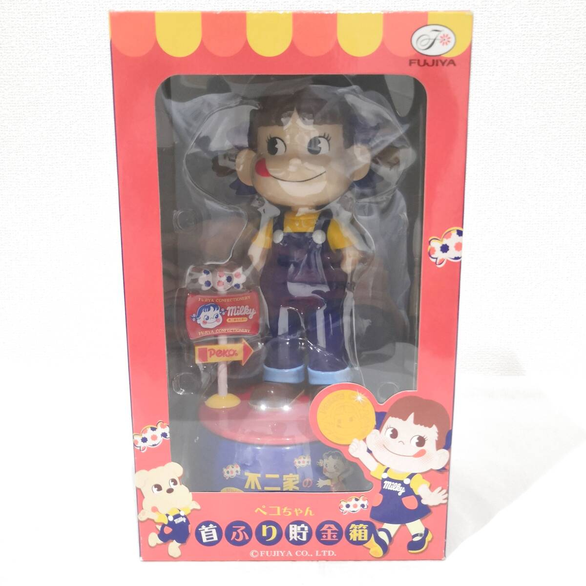 - 【6942】1円~ ペコちゃん 首ふり貯金箱 未使用品 FUJIYA 不二家 インテリア 貯金箱 コレクション ホビー
