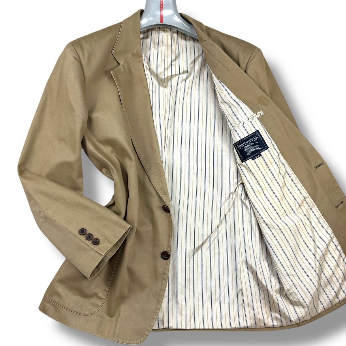 > 1円 良品 M~L バーバリー BURBERRY テーラードジャケット 2B 裏地ストライプ コットン ロゴボタン メンズ ベージュ M